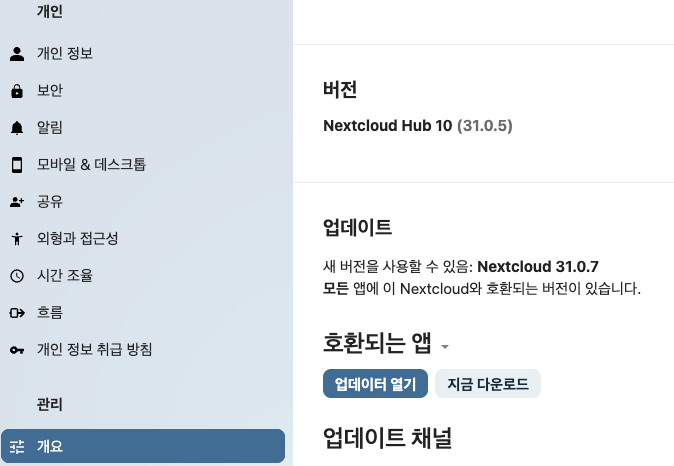 Nextcloud 업데이트 방법 따라해보기 (Nextcloud 31.0.7) 본문