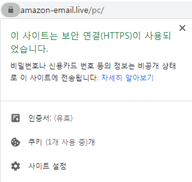 유효한 SSL 인증서를 사용하는 Amazon피싱 사이트 주의 본문
