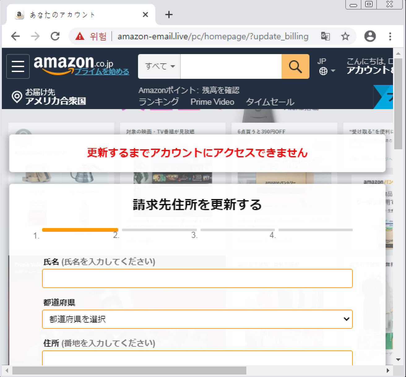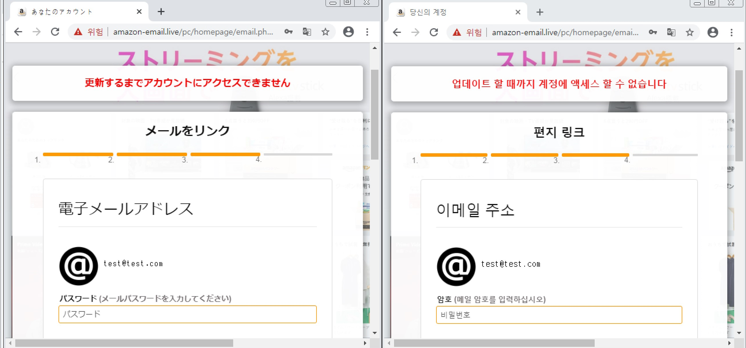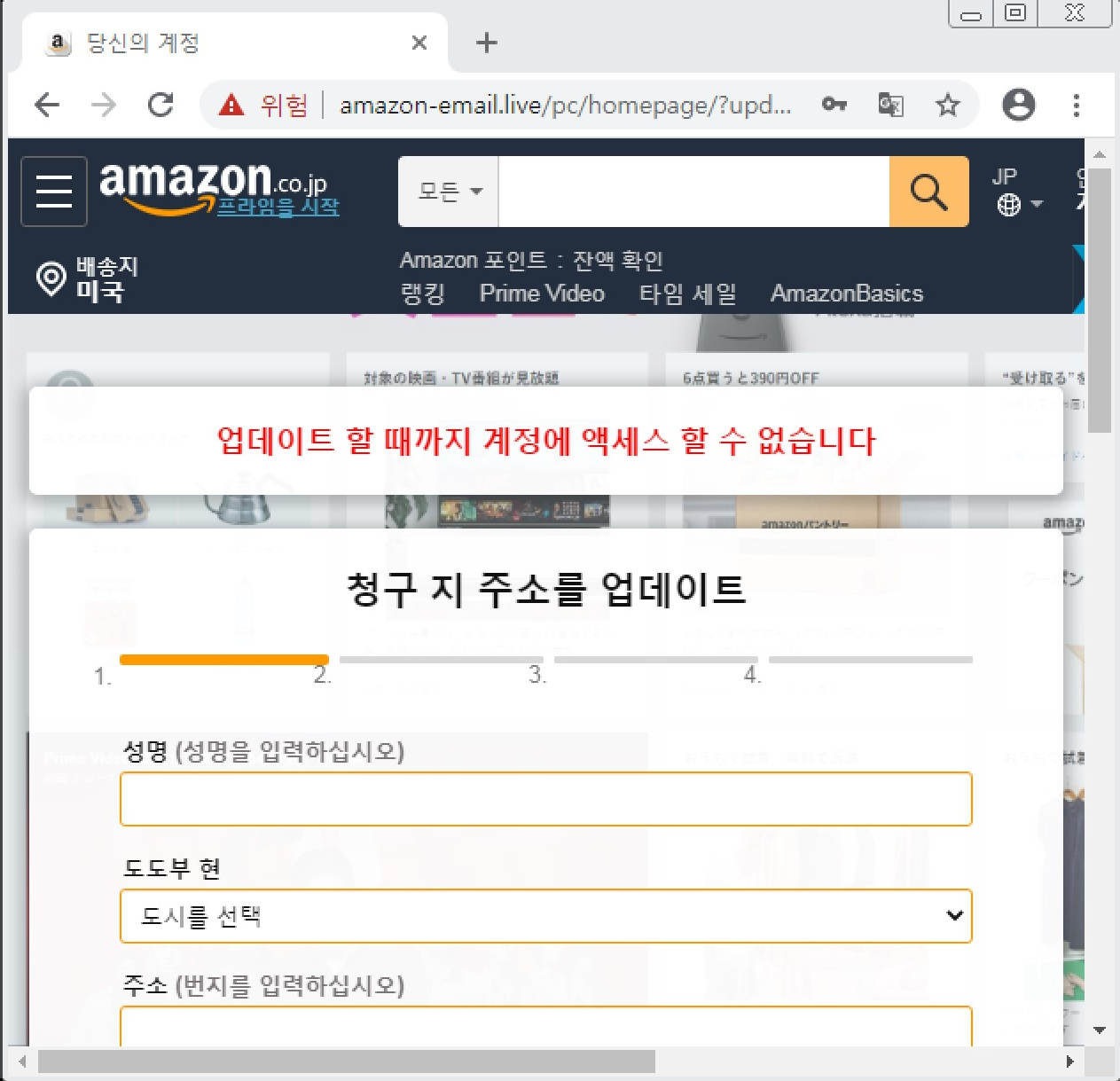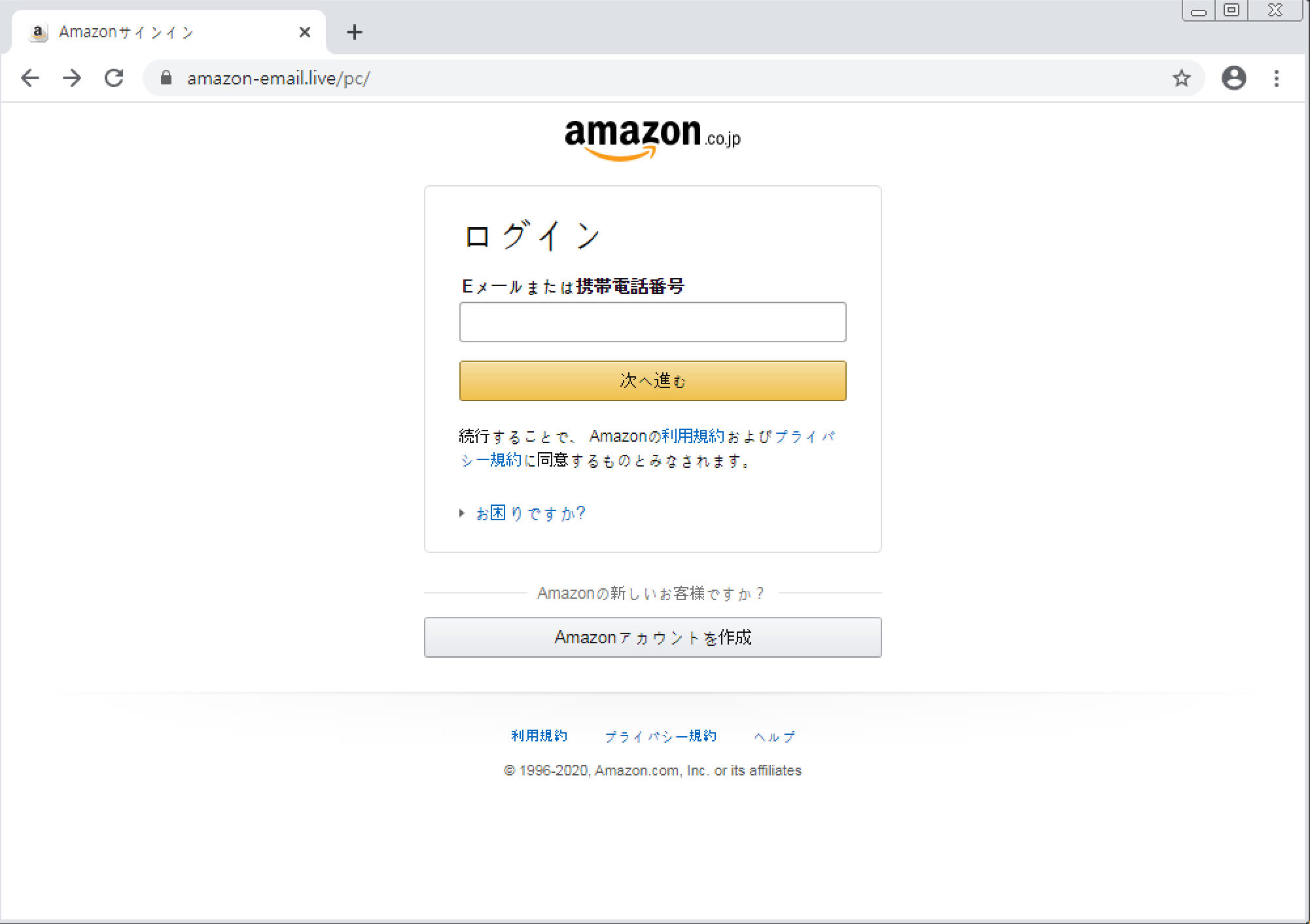 페이지 접속 시 https://amazon-email[.]live/pc/ 의 주소로 연결됩니다.